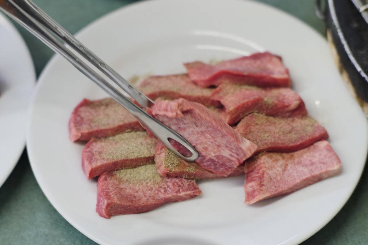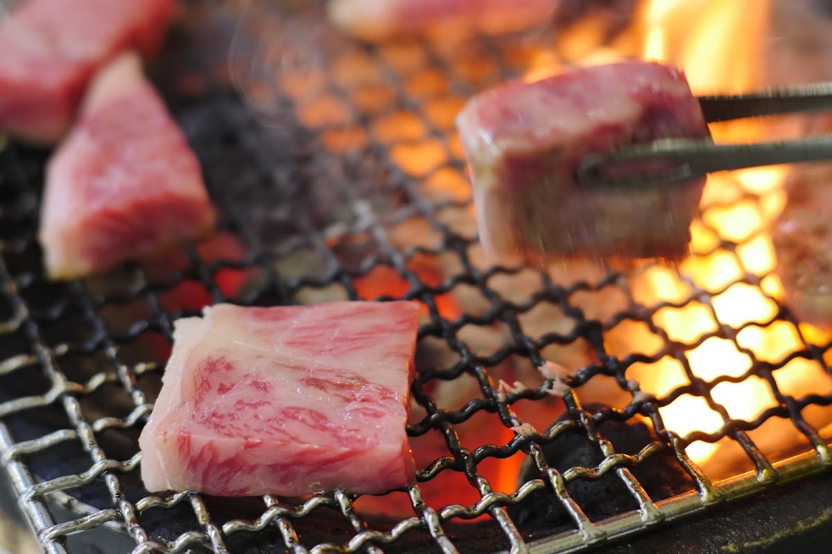 The menu at Kiraku Yakiniku highlights the rich flavors of Japan’s classic yakiniku dishes. The ロース (beef loin) is a standout, cooked to perfection right at your table. Each slice is tender, juicy, and bursts with a savory depth that pairs wonderfully with the restaurant’s selection of dipping sauces. For those looking to balance the richness of the meat, the 焼き野菜 (grilled vegetables) are a must-try. Charred just enough to bring out their natural sweetness, they provide a refreshing contrast to the savory meats and complement the overall dining experience.