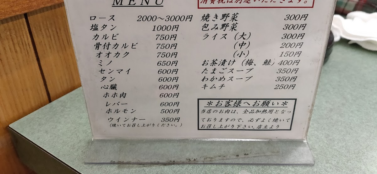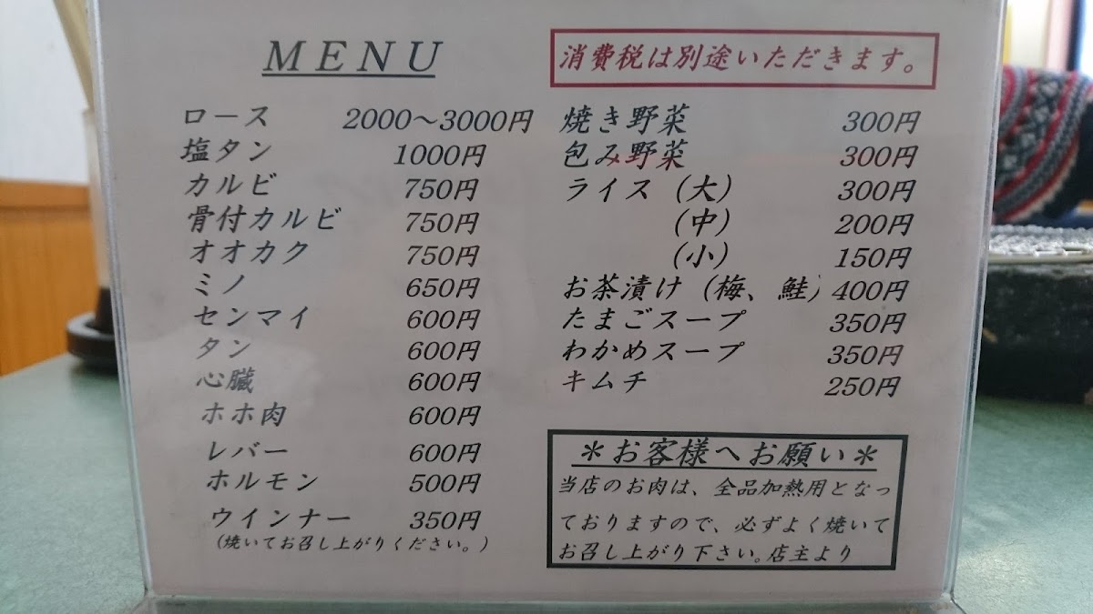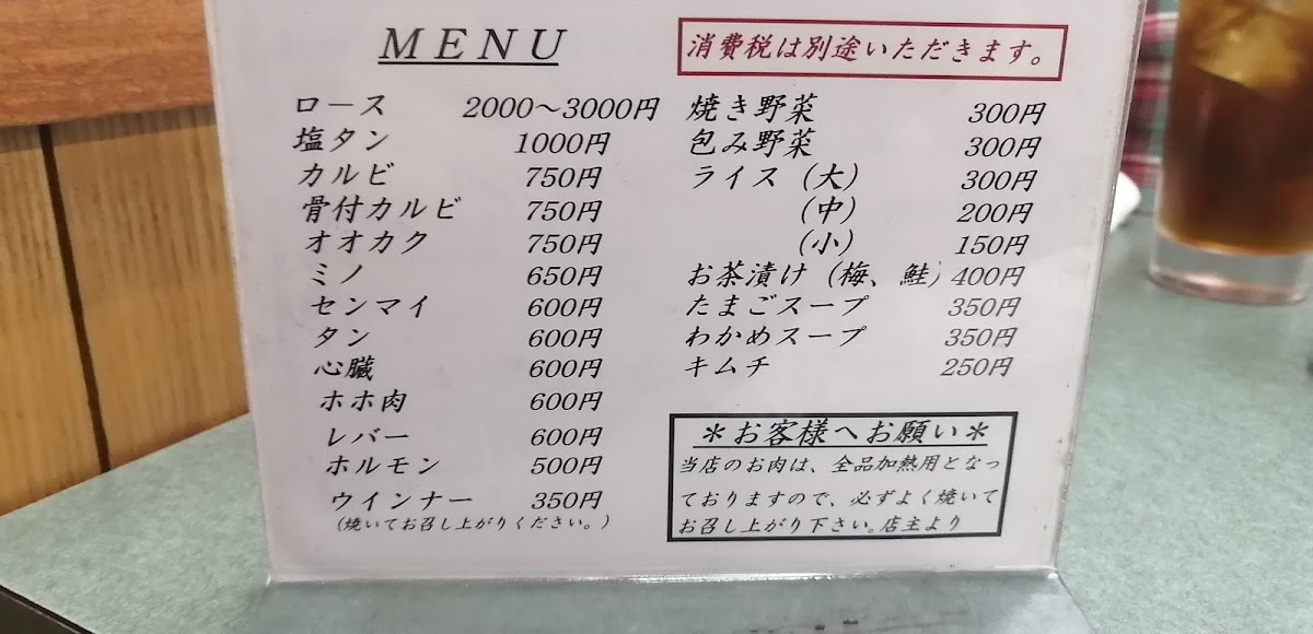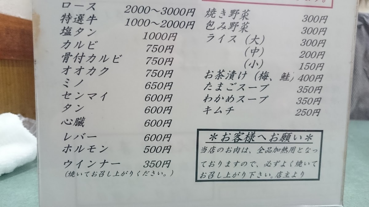 At Kiraku Yakiniku, the menu offers an exceptional selection of grilled delights that highlight the art of yakiniku. Among the standout dishes is the ロース (roast beef), which is a tender and flavorful choice, grilled to perfection and offering a melt-in-your-mouth experience. The 焼き野菜 (grilled vegetables) are another highlight, offering a well-seasoned assortment of fresh vegetables that complement the meats perfectly. The variety on offer extends to other classic yakiniku items, all featuring fresh ingredients that are expertly prepared to enhance their natural flavors. The restaurant’s commitment to quality is evident in the balance of textures and flavors, making it a must-visit for anyone craving a satisfying yakiniku experience.